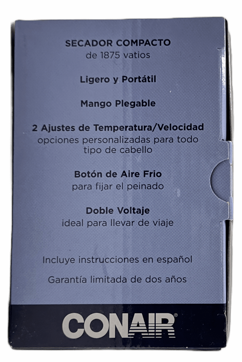 Perfect for travel, whether you’re going to the gym in town or trekking across the globe, this compact dryer combines convenience with performance. Lightweight and portable, with a folding handle, it’s an easy fit in any tote or duffle bag. 1875 watts of power and 2 heat and speed settings makes this dryer a must for anyone who wants to keep their hair perfectly styled wherever their busy life takes them. Dual voltage makes it safe for use worldwide.