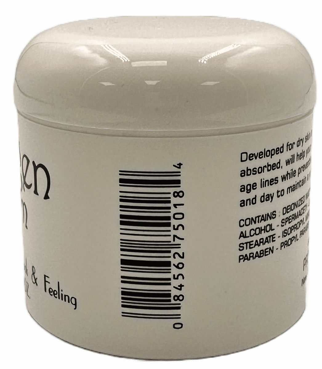 Deionized Water – Collagenon- Lanolin- Lanolin Alcohol Spermacety – Emersol 132- Cetyl Alcohol -glyceryl Stearate-isopropyl Miristate Propylene Glycol-methyl Paraben-propyl Paraben Dea Cetyl Phosphate.